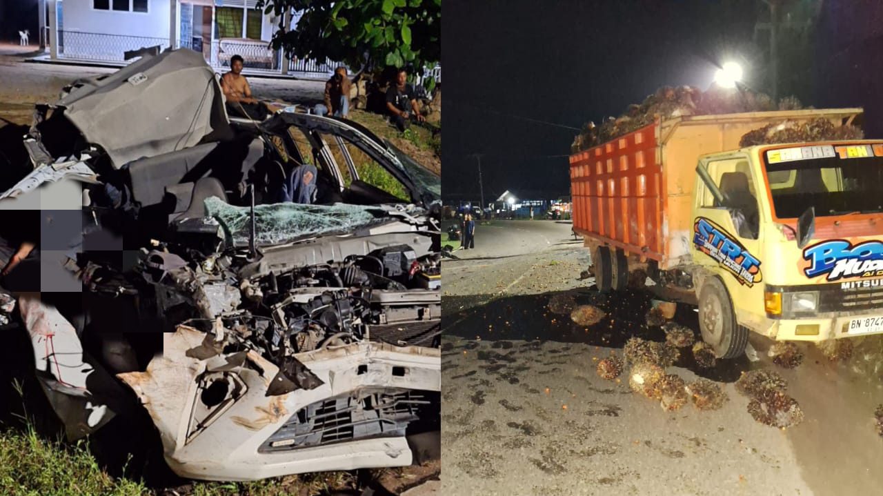 Peristiwa yang terjadi sekitar pukul 01.00 WIB ini melibatkan truk dengan nomor polisi BN 8747 VP dan sebuah minibus Daihatsu Sigra berwarna putih dengan nomor polisi BN 1606 RB. Kecelakaan terjadi tepat di tikungan jalan depan sebuah gereja di Desa Keposang.