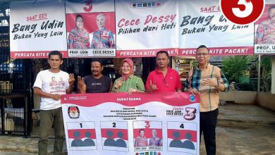 “Insyaallah, saya yakin kader kami solid. Kita satu suara untuk nomor tiga, yaitu pasangan Udin–Dessy,” tegasnya dengan mantap.