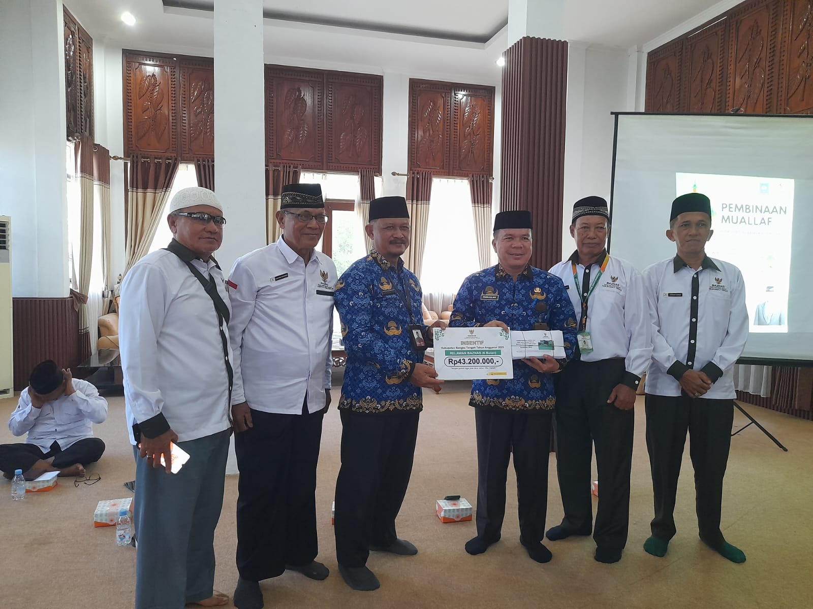 Kegiatan yang berlangsung di Pendopo Bupati Bangka Tengah tersebut diikuti puluhan mualaf dari berbagai kecamatan. Selain itu, diserahkan juga insentif kepada 72 orang relawan Baznas sebesar Rp600.000 dari bulan Juli sampai dengan Desember dengan total Rp43.200.000 kepada DinsosPMD.