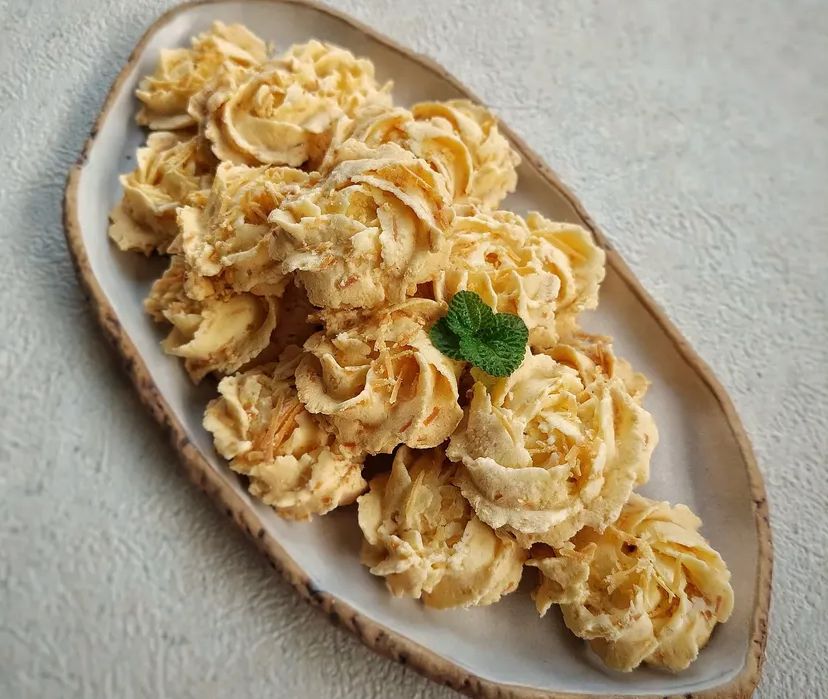 4. Masukkan adonan ke dalam plastik segitiga, gunakan spuit sesual selera. Semprotkan ke dalam loyang g sdh dioles mentega.