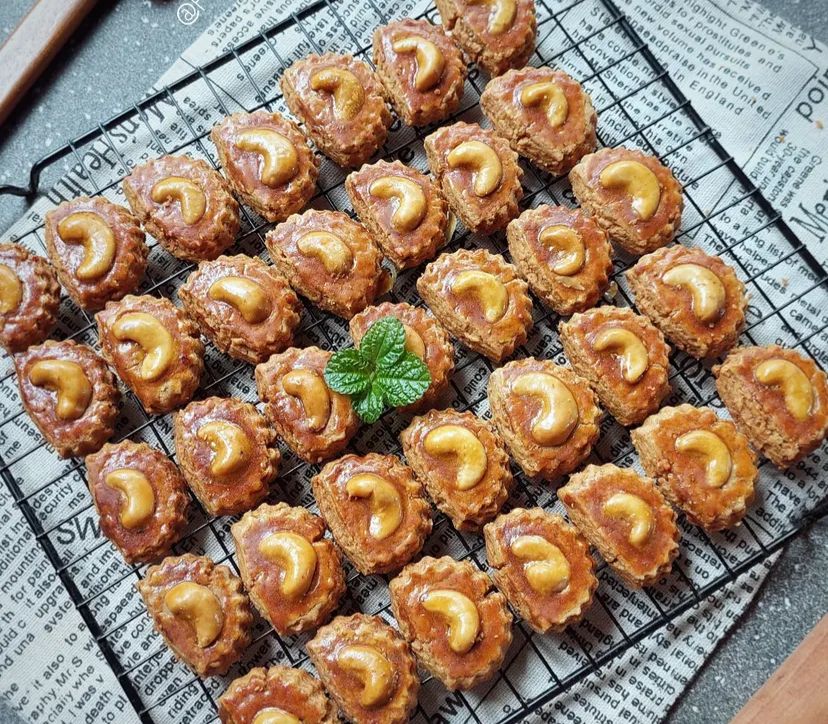 3. Cetak adonan, beri kacang mede diatasnya. Oles kuning telur dan panggang di oven dengan suhu 150°C sampai matang.